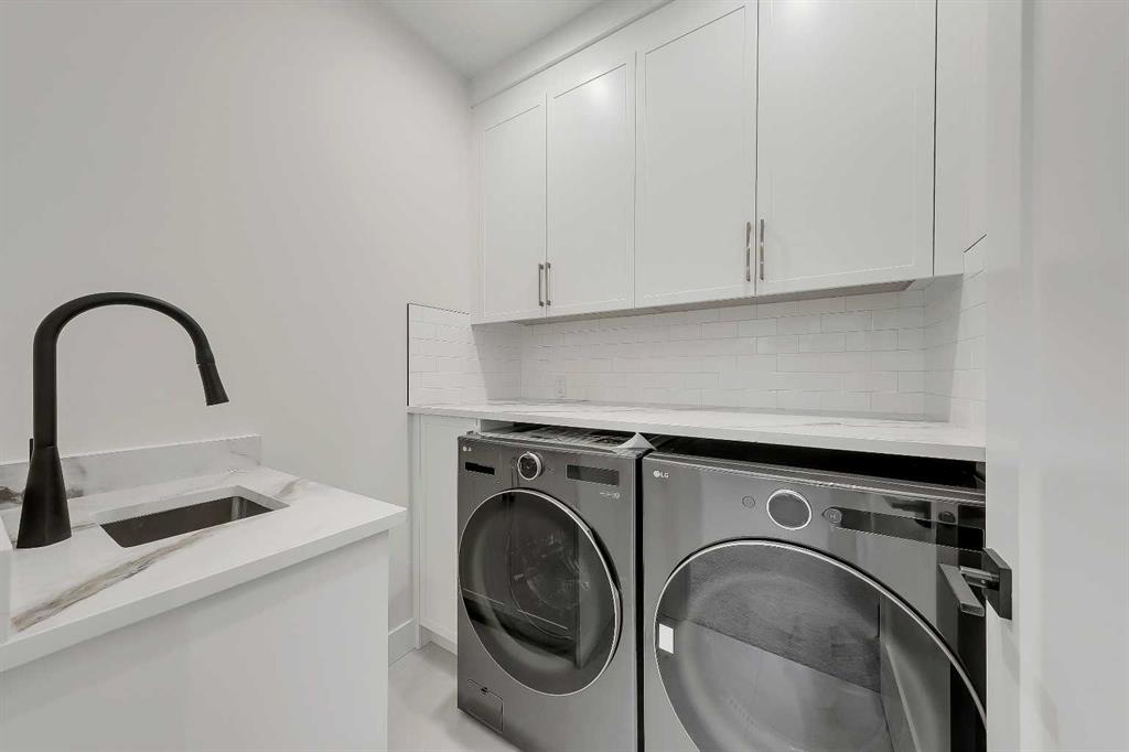 Set within sought-after KILLARNEY, this modern semi-detached home delivers light-filled interiors, a thoughtful layout, and elevated finishes that create a space that feels calm, intentional, and easy to live in. With parks, schools, and local favourites just minutes away, this is a home that supports both busy schedules and slower moments. The front entry immediately sets the tone. A welcoming foyer features CUSTOM BUILT-IN STORAGE with a bench and hooks, keeping bags, shoes, and coats neatly tucked away. Just off the entry is a stylish main floor POWDER ROOM, with quartz skirt, custom framed mirror perfectly placed for guests and day-to-day convenience without interrupting the flow of the living space. From here, the main floor opens into a clean, open layout. The kitchen sits at the centre of the home and anchors the entire level. A LARGE QUARTZ WATERFALL ISLAND creates a natural gathering point, complemented by integrated appliances, warm wood accents, and sleek cabinetry. The dining area flows easily alongside the kitchen, making it ideal for hosting or everyday meals without breaking connection. Toward the rear of the home, the living room feels comfortable and intentional. A LINEAR FIREPLACE with built-in shelving adds warmth and structure, while a BUILT-IN DESK tucked just off the living space creates an ideal work-from-home setup, homework station, or command centre that stays visually connected without taking over the room. At the back of the main floor, an ENCLOSED MUDROOM offers smart separation and functionality. Lockers and storage keep things organized, while direct access leads out to the backyard FULLY FINISHED GARAGE W/EPOXY FLOORS, making transitions effortless year-round. Upstairs, the primary suite stands out with a VAULTED CEILING and FEATURE WALL that add volume and visual interest, creating a true retreat feel. The ensuite balances style and function with a freestanding tub, glass shower, double vanity, and carefully selected finishes that feel calm and refined. Secondary bedrooms are generously sized and easy to furnish. The upper landing adds unexpected flexibility, with enough space for a DESK, READING NOOK, or SMALL PLAY AREA, allowing this level to adapt as needs change over time. Downstairs, a spacious rec area is complemented by a DEDICATED HOME GYM complete with sports flooring and a full wall mirror. A WET BAR with floating shelves and wine fridge enhances the entertaining potential, while a bedroom and full bathroom provide comfortable space for guests or extended stays. The home is set in the heart of KILLARNEY, known for its walkability and strong local amenities. Just minutes from 17TH AVE SW, you’re close to neighbourhood favourites like Blanco Cantina & Merchants, along with nearby schools including Killarney School and Holy Name School. Optimist Athletic Park & the Killarney Aquatic & Recreation Centre are close by, while quick access to Crowchild Trail and Bow Trail keeps downtown easily within reach.