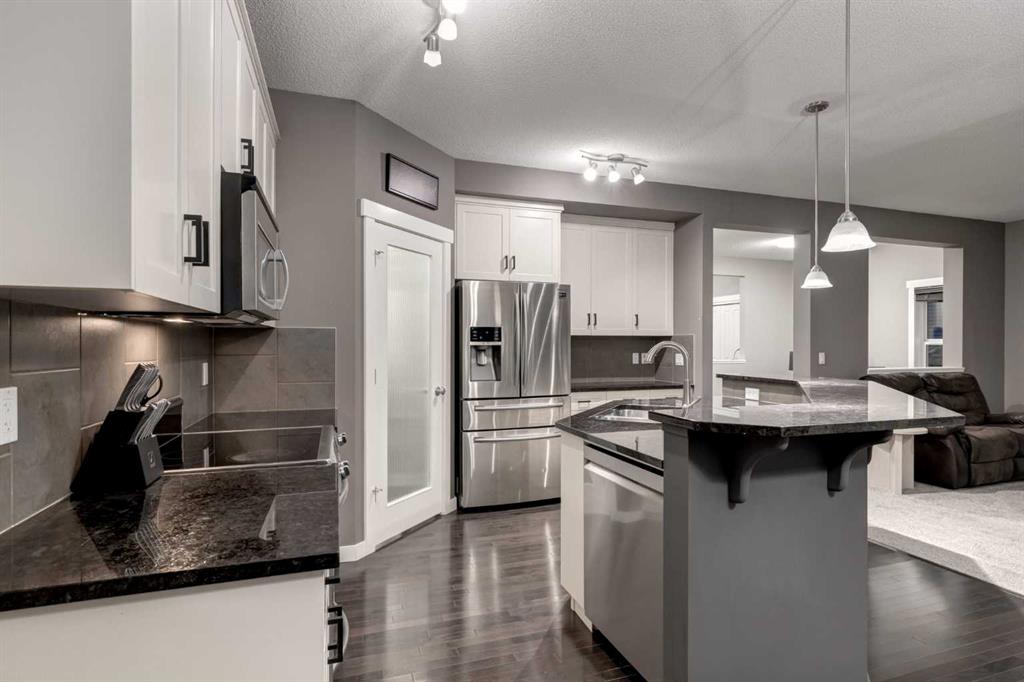 INCREDIBLE VALUE for the $$$. THIS HOUSE is IMMACULATE + is FULL of UPGRADES!! This AIR-CONDITIONED, 2 Storey Home has 2,939 Sq Ft of DEVELOPED SPACE, 4 Bedrooms, 3.5 Bathrooms, an ATTACHED DOUBLE GARAGE, a 27’8’ x 16’0” Deck w/a HOT TUB, on a 4,524 Sq Ft LOT in the SOUGHT-AFTER Community of SILVERADO!! INCREDIBLE Curb Appeal w/Low Maintenance Landscaping + DURABLE HARDIE BOARD SIDING. The Front Porch INVITES you in where you are met w/ 9’ Ceilings, NEUTRAL Colour Tones, RICH HARDWOOD Flooring, + LARGE Windows throughout allowing in NATURAL LIGHT. A Den at the front can be converted into a FORMAL Dining Room, or used as a HOME OFFICE, making Working From Home a BREEZE!! Heading into the OPEN CONCEPT Floor Plan is the Kitchen, Dining, + Living Room area, making it easy to ENTERTAIN when guests are over. The SLEEK Kitchen has WHITE Cabinetry, SS Appliances incl/ELECTRIC STOVE, a Tiled Backsplash, a WALK-THROUGH Corner Pantry, a LARGE ISLAND w/GRANITE Countertops incl/Breakfast Bar for those On-The-Go Meals. The Dining Room is PERFECT for those meals around the table w/FAMILY, + FRIENDS as you share laughter, + make memories. The door leads to the expansive BACK DECK. The Living Room has a tiled CORNER GAS Fireplace w/a mantle, making this area WARM + COZY. You can put your feet up after a long day or wrap yourself in a blanket while reading a book. There is an UPDATED 2 pc Bathroom, + a MUD Room w/Closet + Laundry that leads out to the Garage. Going up the carpeted stairs is the SPACIOUS Bonus Room w/2 LARGE Windows. There is a 4 pc Bathroom w/Soaker Tub, the 2nd, + 3rd GOOD-SIZED Bedrooms, which can also be used as an additional Home Office or Hobby Room. The Primary Bedroom is a RELAXING RETREAT that has a 5 pc EN-SUITE incl/Standing Glass Shower, a Soaker Tub, + Dual Sinks, w/a LARGE WALK-IN. Heading down to the FULLY FINISHED Basement is the LARGE 4th Bedroom, PERFECT for a teenager or guest, w/a LARGE Walk-in Closet, + a 3 pc Bathroom w/IN-FLOOR HEATING. 2 FLEX SPACES make the Basement an IDEAL place for an AT-HOME GYM, a PLAYROOM for the kids, or an ADDITIONAL Living Room for Movie Lovers. NOTEABLE UPGRADES: UV Germicidal Air Purifier, FURNACE (inspected in 2025), Washer & Dryer (2025), New Roof (2024), Dishwasher (2023), Hardie Board Siding (2021), New Deck (2020), Fridge (2019), Garage Door (2018).