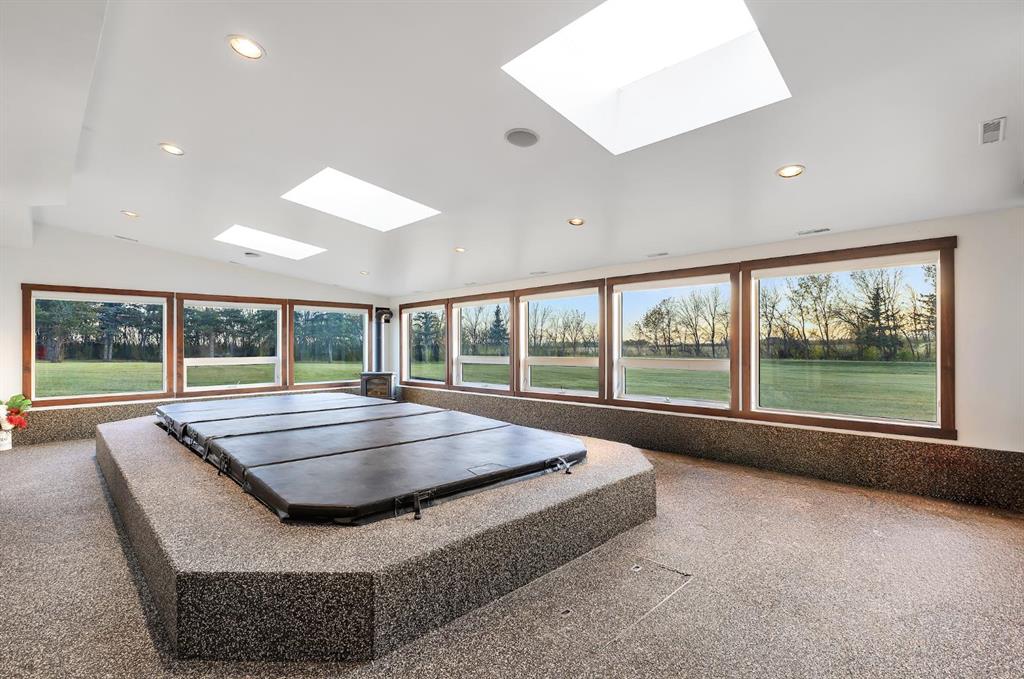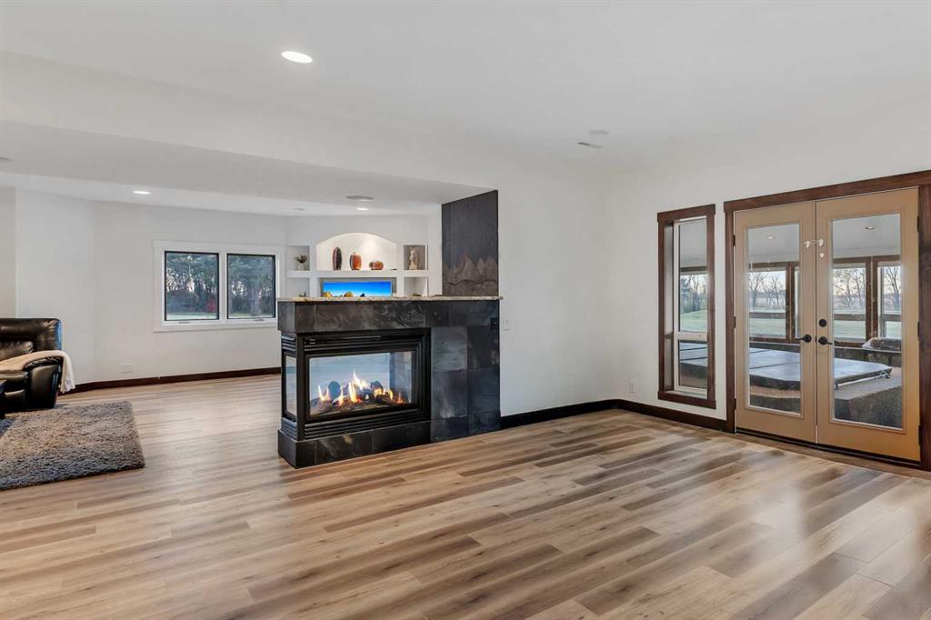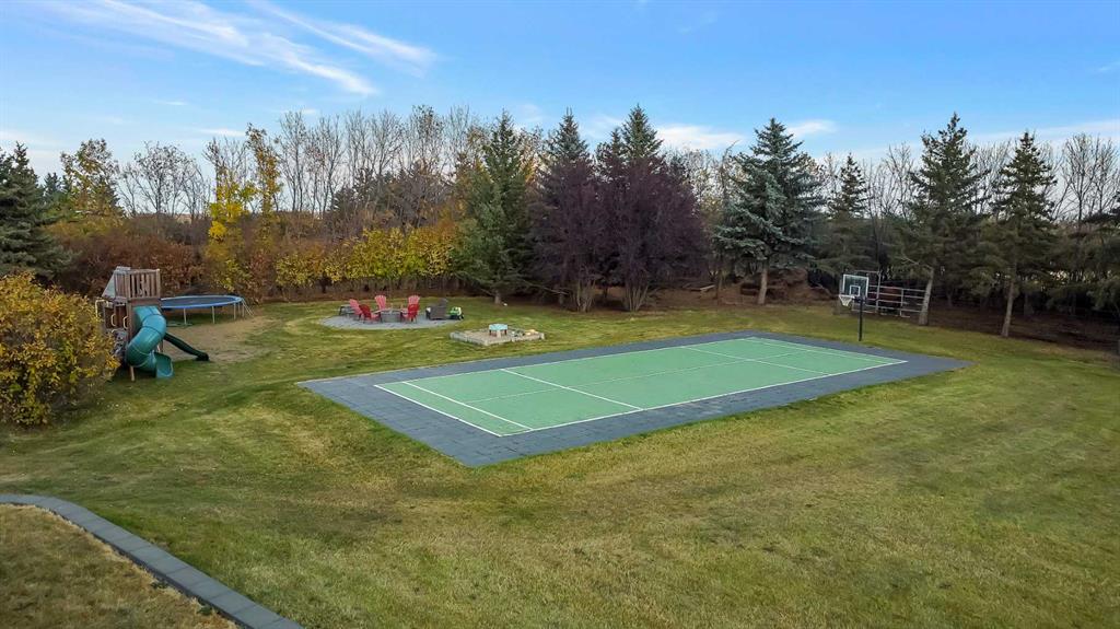 Set on a private GATED, beautifully landscaped property surrounded by open skies and mature trees, this CUSTOM-BUILT ESTATE combines timeless design with thoughtful functionality across 6,000+ sq ft of living space! The long, STAMPED CONCRETE driveway leads to an impressive front entry and a garage large enough to hold everything from collector cars to recreational gear — OVER 2,000 SQ FT OF HEATED SPACE FOR WORK, STORAGE, OR PLAY. Step inside to a grand foyer with soaring ceilings and sunlight spilling through oversized windows. The main floor unfolds in a way that feels both open and intimate, centered around the living room’s striking stone fireplace and two-story windows. The kitchen anchors the space — rich wood cabinetry, granite counters, high-end appliances, and a generous island for gatherings. A connected dining area overlooks the backyard, while the COVERED SUNROOM WITH SKYLIGHTS AND BUILT-IN BBQ extends entertaining outdoors year-round. Down the hall, the main-floor PRIMARY SUITE offers comfort and privacy with a walk-in closet and spa-inspired ensuite. Two additional bedrooms, a full bath, and a convenient powder room make this level perfect for family living. A large mudroom with walk-in closet and a DOG WASH connects directly to the garage — a layout designed for real life. Upstairs, an open riser curved staircase leads to a bright LOFT overlooking the living area below — a relaxed space for lounging, movie nights, or quiet reading by the fireplace. Two generous bedrooms each enjoy their own ENSUITE and walk-in closet, giving this level a boutique-hotel feel that’s ideal for teenagers or guests. Laundry is also tucked neatly upstairs for everyday convenience. The lower level is where the fun begins. A massive REC ROOM with 3-WAY FIREPLACE provides space for games, gym equipment, or movie marathons, while an OPEN OFFICE AREA offers the perfect spot for working from home. There’s also a cozy DEN, TWO MORE BEDROOMS, AND A FULL BATH — plenty of space for extended family or visitors. And then there’s the showstopper: an INDOOR POOL with its own fireplace and lounging area, seamlessly connected to the outdoor yard. It’s a private wellness retreat right at home. Outside, the property feels like a personal resort. Mature trees line the perimeter for privacy, while the open lawn stretches wide with room to play, entertain, or simply breathe. Outbuildings add endless flexibility — storage, workshops, or hobby spaces — and the sports court is ready for friendly competition. Located just minutes from Calgary and Chestermere, this home offers quick access to schools, recreation, and amenities while keeping the peace and quiet of country life. You’re a mere minS away from East Lake School in Chestermere, Safeway and Starbucks, 15 min from East Hills Shopping with Costco, movie theatre, and more, and 15 min to the Foothills Industrial area. It’s a place where every detail feels intentional, every space has purpose, and every sunset reminds you why you live here.